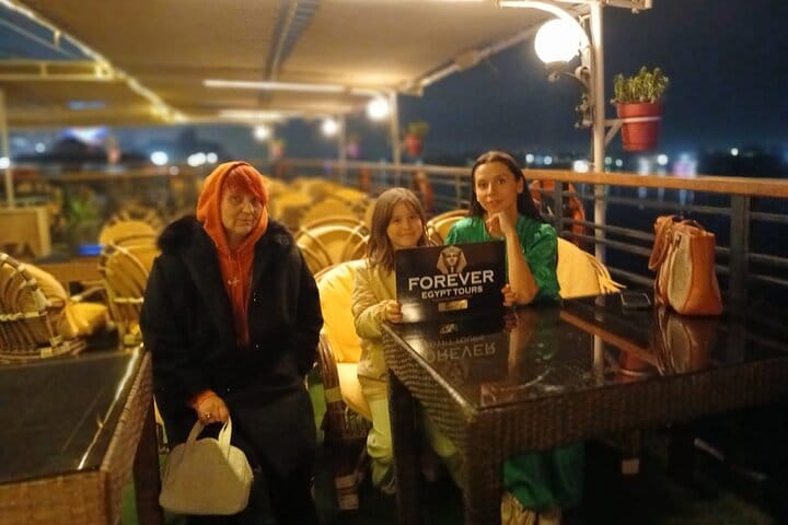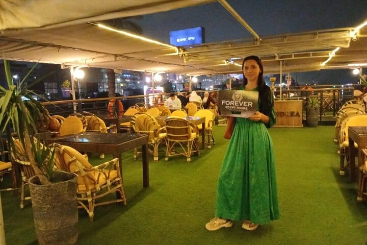 All taxes, fees and handling charges Open Buffet Dinner Hotel pickup and drop-off Live entertainment shows (Music by a band, Belly Dancing and Folklore Tanura show). Private transfers in an Air conditioning Vehicle. Local tour guide.