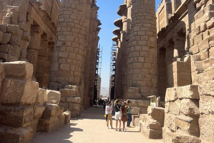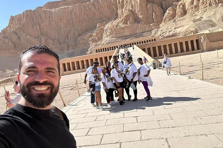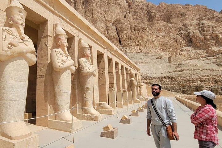 Experience a more personalized tour of Luxor by booking this private trip, including direct transfers from your hotel or cruise ship. You will visit the Valley of the Kings, the Temple of Hatshepsut, and the Colossi of Memnon, followed by crossing the Nile to explore Karnak and Luxor temples. The basic package includes transport and bottled water. You can upgrade to add a licensed guide, a guide and entry fees, or a guide, entry fees, and lunch. Discover the attractions of Luxor’s East and West banks on a private day tour. See the Valley of the Kings, the Temple of Hatshepsut, the Karnak Temple, and more. Upgrade to include a licensed guide, prepaid entry fees, and lunch. Save time and stress with private round-trip transfers from Luxor hotels or cruise ships.