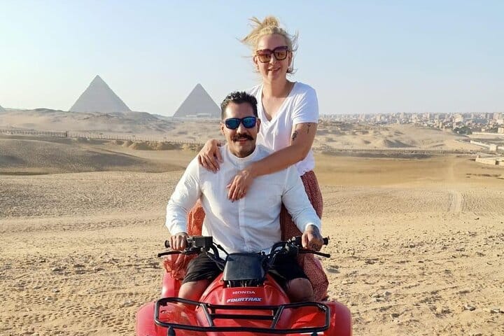 But the adventure doesn't stop there — end your tour with an exhilarating ATV ride through the desert, with breathtaking views of the pyramids in the distance.