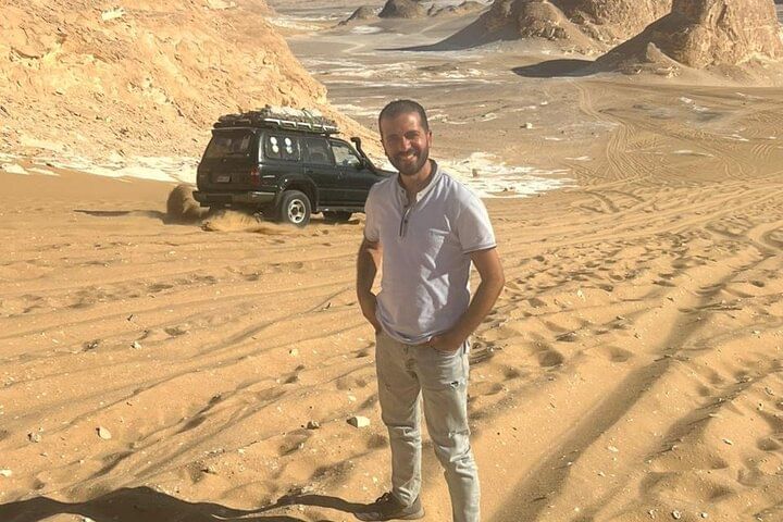 "Embark on an unforgettable two-day adventure into Egypt’s White Desert, departing from Cairo. Begin your journey with a visit to the Bahariya Oasis, a tranquil desert retreat surrounded by lush palm groves. From there, explore the mesmerizing Black Desert, known for its volcanic formations, and the striking Crystal Mountain, where natural quartz crystals shine under the desert sun. Continue to the otherworldly White Desert, where you'll camp beneath a canopy of stars in a landscape of surreal white limestone formations. Experience the desert’s hidden natural springs and immerse yourself in its captivating legends. Along the way, learn about Egypt’s desert history and culture with a knowledgeable guide in Egyptology. This tour offers a perfect blend of natural beauty, adventure, and rich cultural insights."