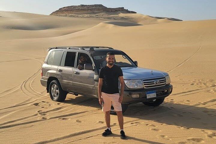 Begin your exclusive Siwa Oasis adventure with a private, air-conditioned pickup from Cairo or Giza. Relax on a scenic journey through the Western Desert, complete with rest stops, light snacks, and insights from your local guide. Upon arrival, switch to a 4x4 and dive into the majestic Great Sand Sea—dune bashing, sandboarding, and soaking in a breathtaking Sahara sunset.
